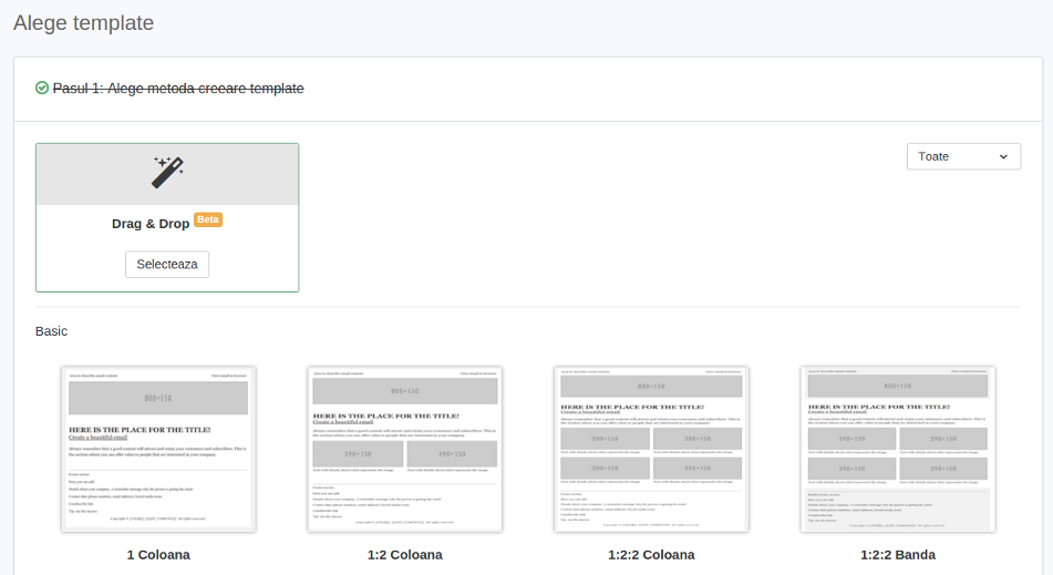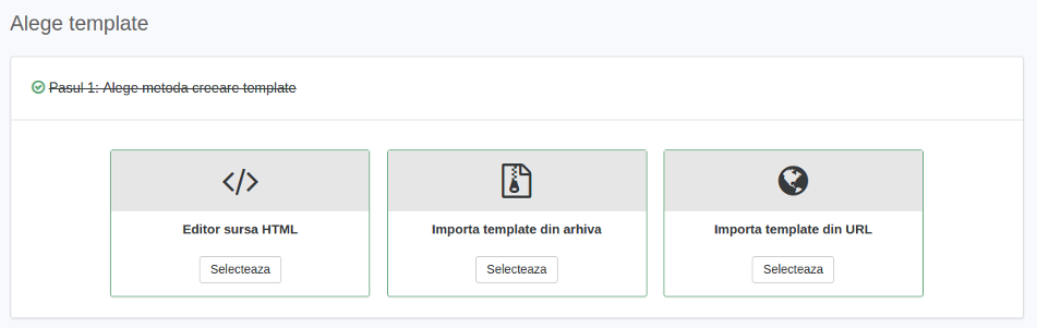 Creeaza template-uri folosind editorul Drag & Drop, editorul sursa HTML sau alege unul din template-urile implicite realizate de noi.