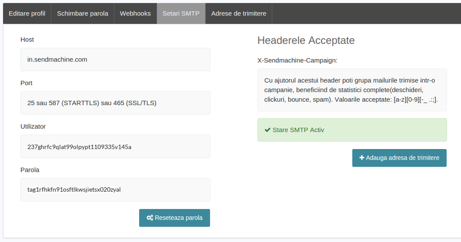 Cu ajutorul setarilor SMTP din contul tau poti trimite email-uri folosind o aplicatie proprie sau poti integra Sendmachine in diferite platforme.